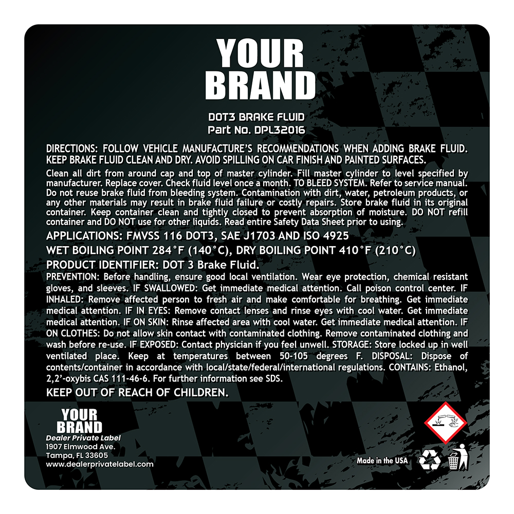 Keep your braking system in peak condition with DOT 3 Professional Brake Fluid, designed for superior performance in standard and ABS braking systems. This high-quality fluid ensures consistent braking power, protects critical components, and prevents brake fade under demanding conditions. Ideal for everyday driving and professional automotive use, DOT 3 Professional Brake Fluid ensures safe and efficient braking performance for all road conditions. DOT 3 Professional Brake Fluid is also available in 32oz.