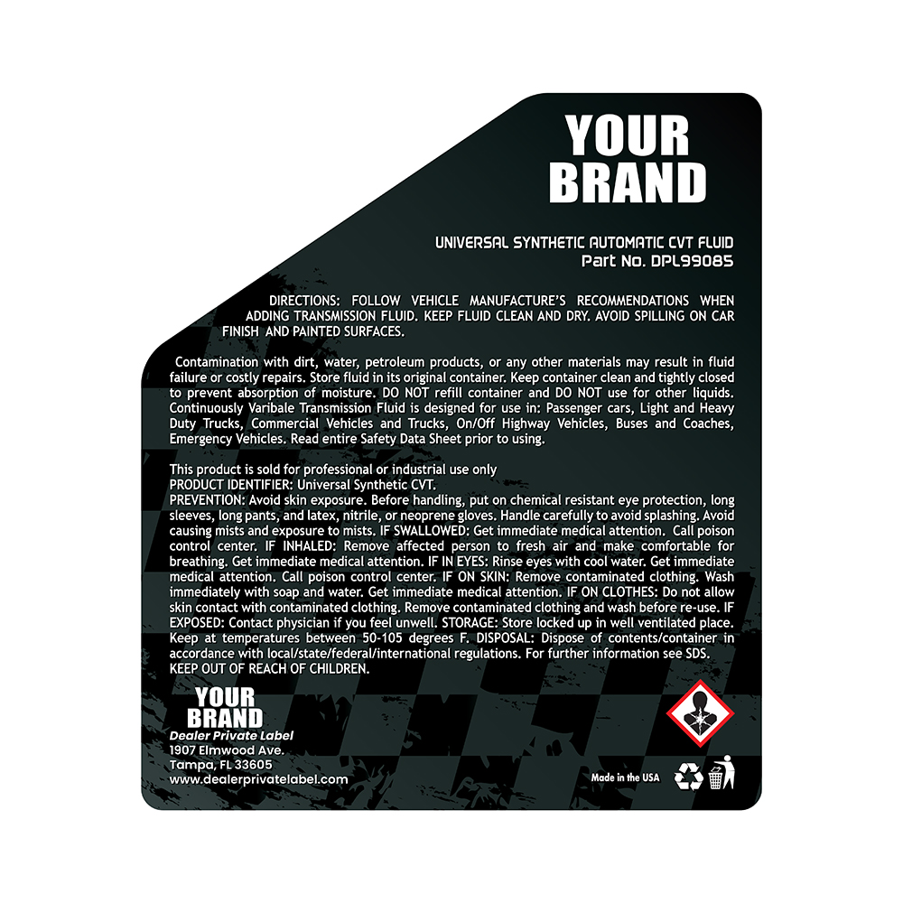Universal Synthetic Transmission CVT Fluid is a high-performance, fully synthetic fluid designed to provide exceptional protection and performance for Continuously Variable Transmissions (CVTs) in a wide range of vehicles. This advanced formula ensures smooth shifting, reduces wear, and extends the lifespan of your CVT by offering superior lubrication and protection under a variety of driving conditions. Whether in passenger cars, trucks, or SUVs, this fluid is compatible with most CVT systems, making it the perfect solution for routine maintenance and servicing. Universal Synthetic Transmission CVT Fluid is the perfect solution for ensuring your CVT operates at peak performance. Whether for routine maintenance or repair, this synthetic fluid helps optimize shifting, reduce wear, and extend the lifespan of your transmission, all while improving fuel efficiency and driving comfort. Keep your CVT running smoothly and reliably with this advanced, high-quality transmission fluid. Also available in 32oz. and 4 Qt.